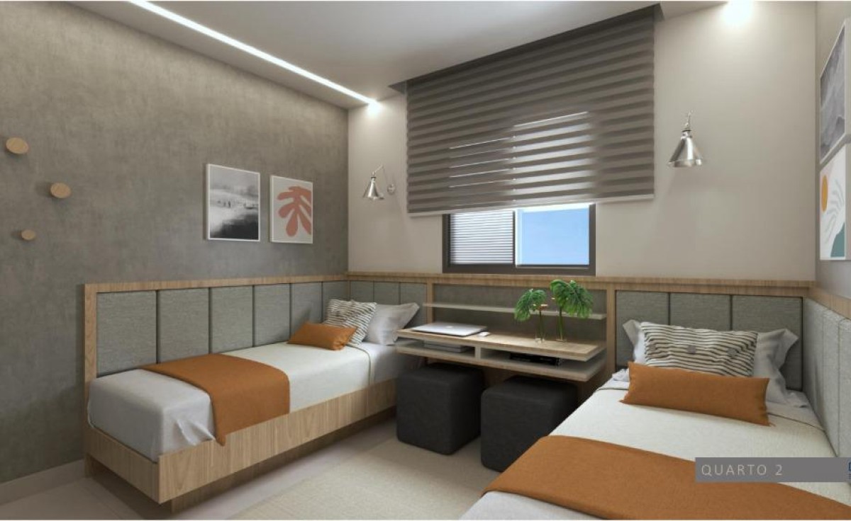 Apartamento com área construída 90m², 3 quartos, sendo 1 suíte, banho social, sala para 2 ambientes, cozinha, área de serviço e lavabo, 02 vagas de garagem cobertas sob pilotis. Acabamento porcelanato polido e retificado 80x80cm retificado, janelas esquadrias em alumínio e vidro, granitos e linha de revestimento retificada.